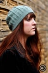 Beret version shown in Dream in Color Smooshy [450yd/411m per 113g; 100% Merino]; Slouchy version shown in Townhouse Yarns Grafton 4ply [437yd/400m per 100g; 80% Merino, 10% Nylon, 10% Cashmere]Shown in size 21.5in/54.5cm on model with 21.75in/58.5cm circumference head