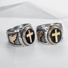 Description: Hot selling P jewelry titanium steel color retaining vacuum gold plating God's Hand men's ring