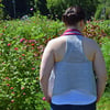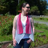 Summer knitting invites easy stitches with June Blooms. Inspired by my gramma June’s dying words to me, “keep knitting; keep designing,” it contrasts her love of simple garment design with the vibrant colors of a day in the garden. June Blooms works beautifully over tank tops and long-sleeved shirts alike.