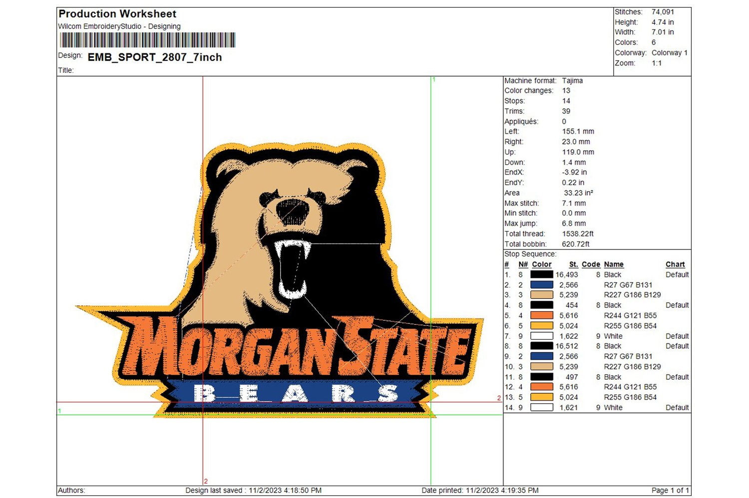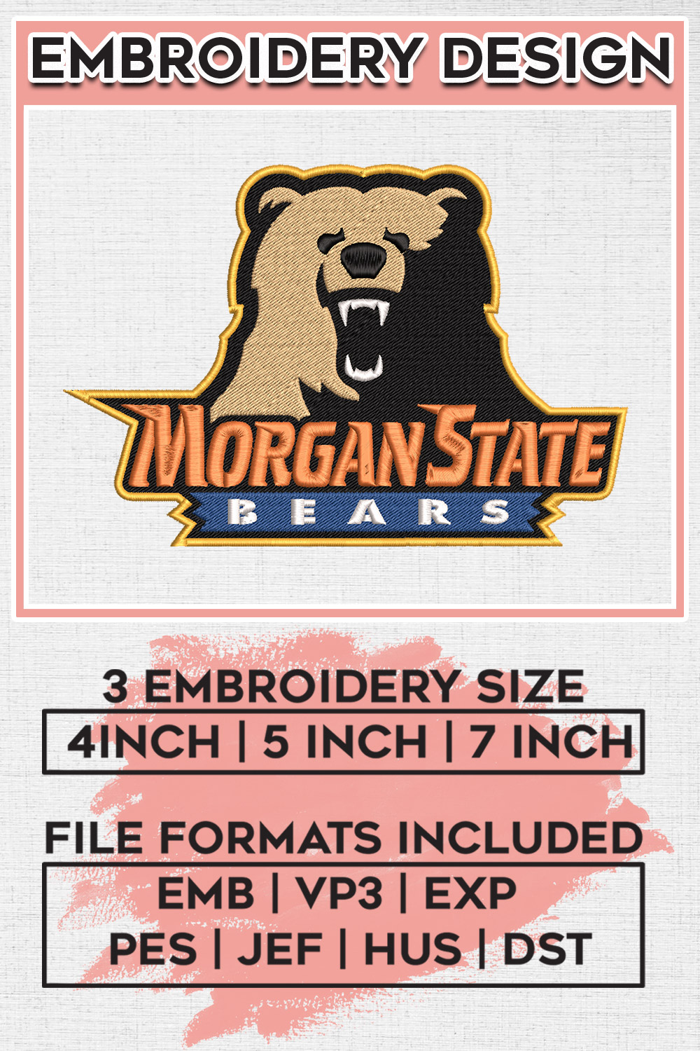 Morgan State NCAA Embroidery Designs, NCAA Morgan State Bear Machine Embroidery Files, NCAA Logo embroidery designs, Football Team Logo, Digital Download