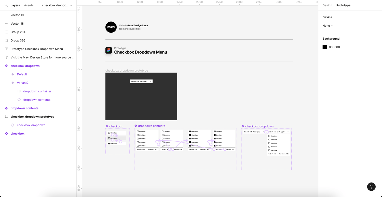 Checkbox Dropdown Menu with Select All and Deselect All functions – Figma prototype – source file for this video