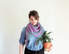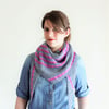 The Fragrant Shawl is a fun and fresh accessory, perfect for transitional seasons. Have fun with styling the asymmetrical shape or try wrapping the longest end twice around your neck for a kerchief style look. I recommend picking 3 colours you love, or two neutrals and a colour pop to knit your version out of, and watch how quickly those rows of delicate flowers grow!