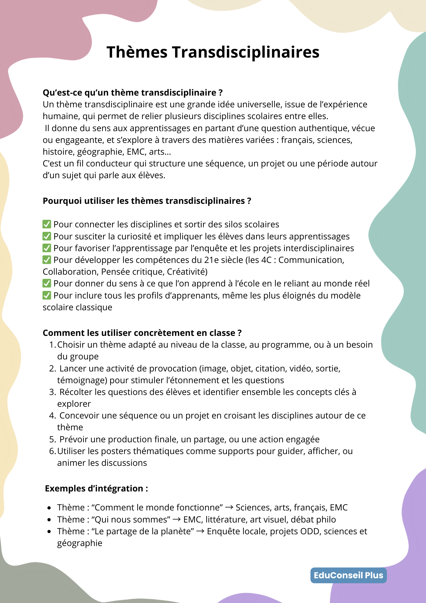 - Donner du sens aux apprentissages en reliant les disciplines.