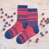 A fun top-down sock pattern. The socks can be fraternal or matching, and you use a dice to determine, which stitch pattern to work. No two socks are the same! Worked in 2 colours of 4ply/fingering weight sock yarn. If you don’t have a dice, then just google “roll a dice” instead.