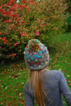 Super fun, slightly slouchy hat made with stranded colourwork technique. Ideal for using up the end of a pretty handspun or a bright variegated yarn.
