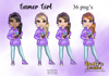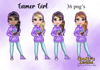 Instant digital download of our Cute Gamer Girl in Purple PNG (36 PNG’s included one)