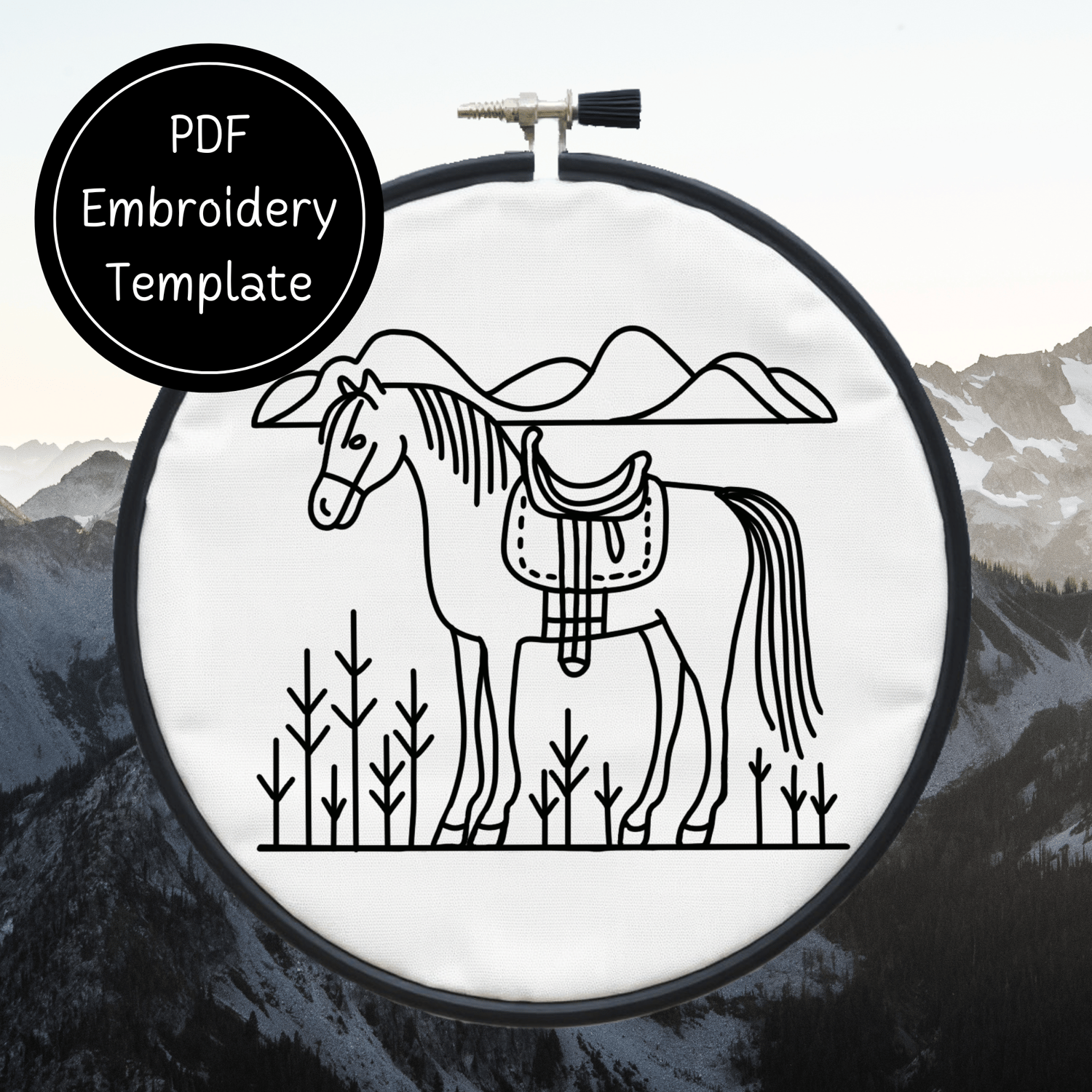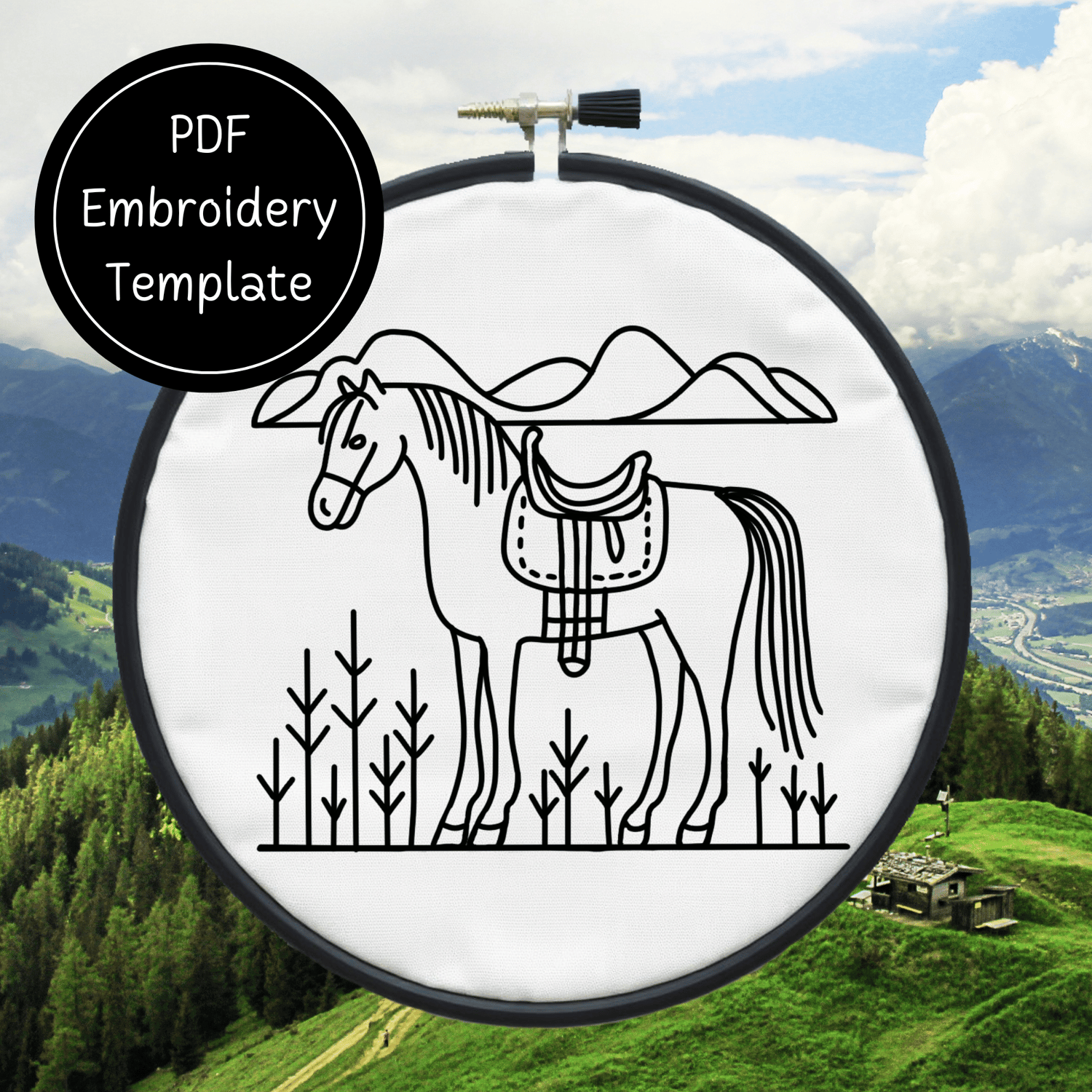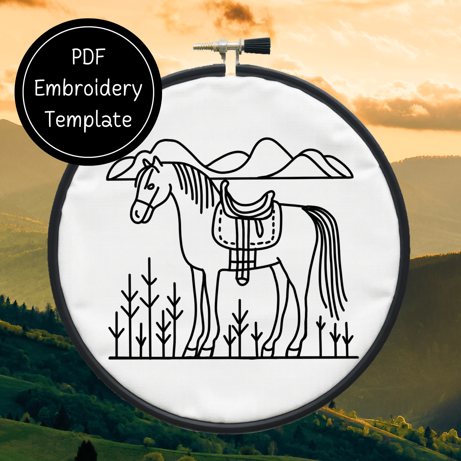 Horse & Saddle Hand Embroidery Pattern DIY Equinine Design For Hand Stitching - Instant Download