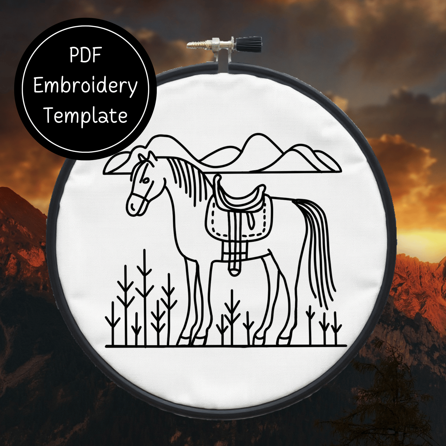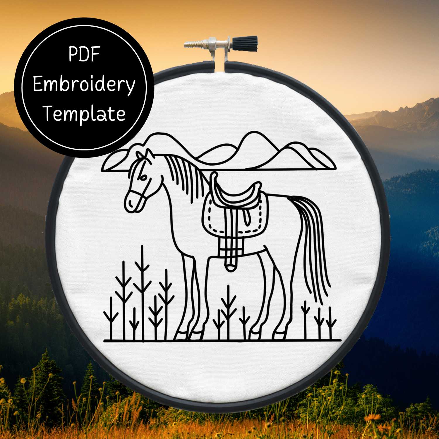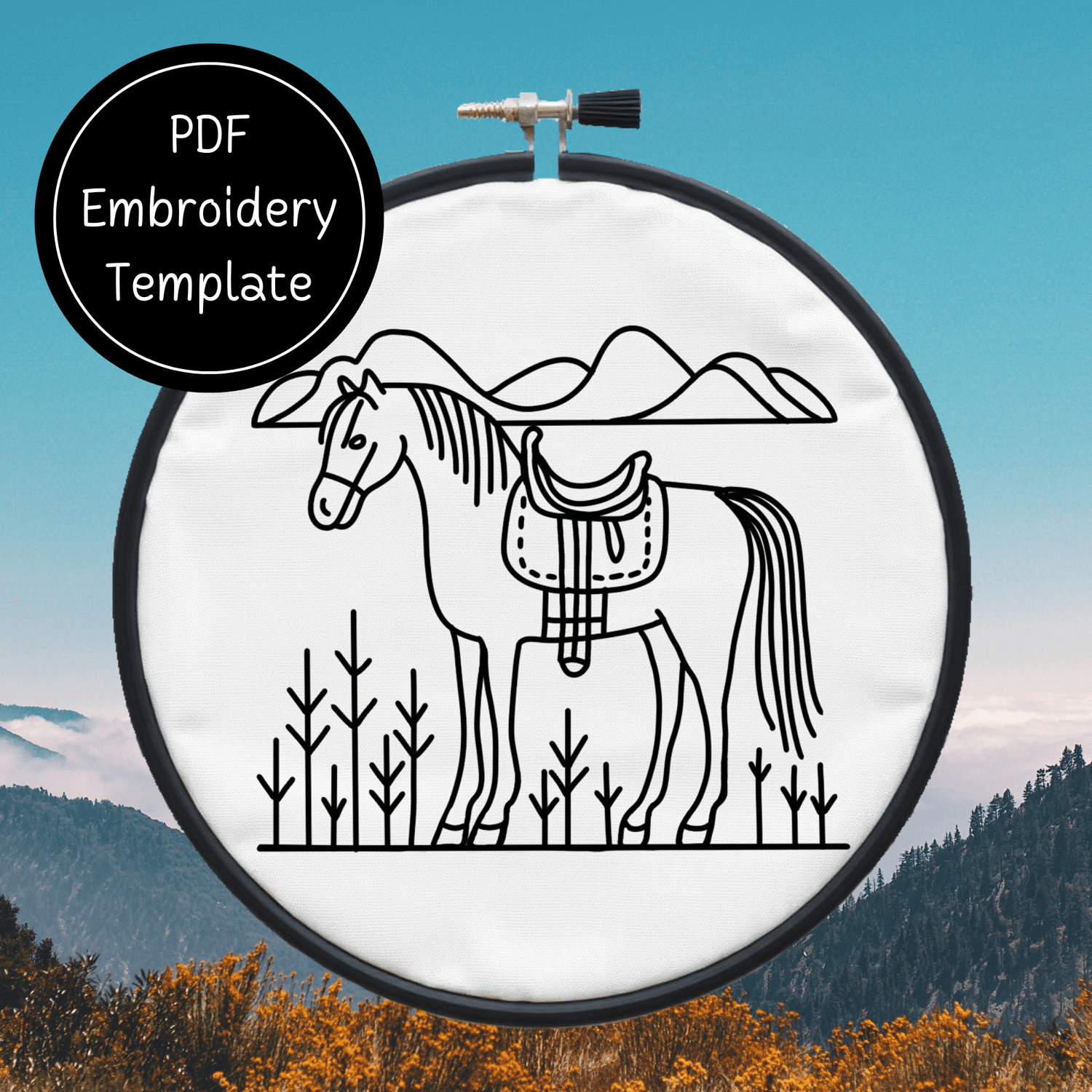 Horse & Saddle Hand Embroidery Pattern DIY Equinine Design For Hand Stitching - Instant Download
