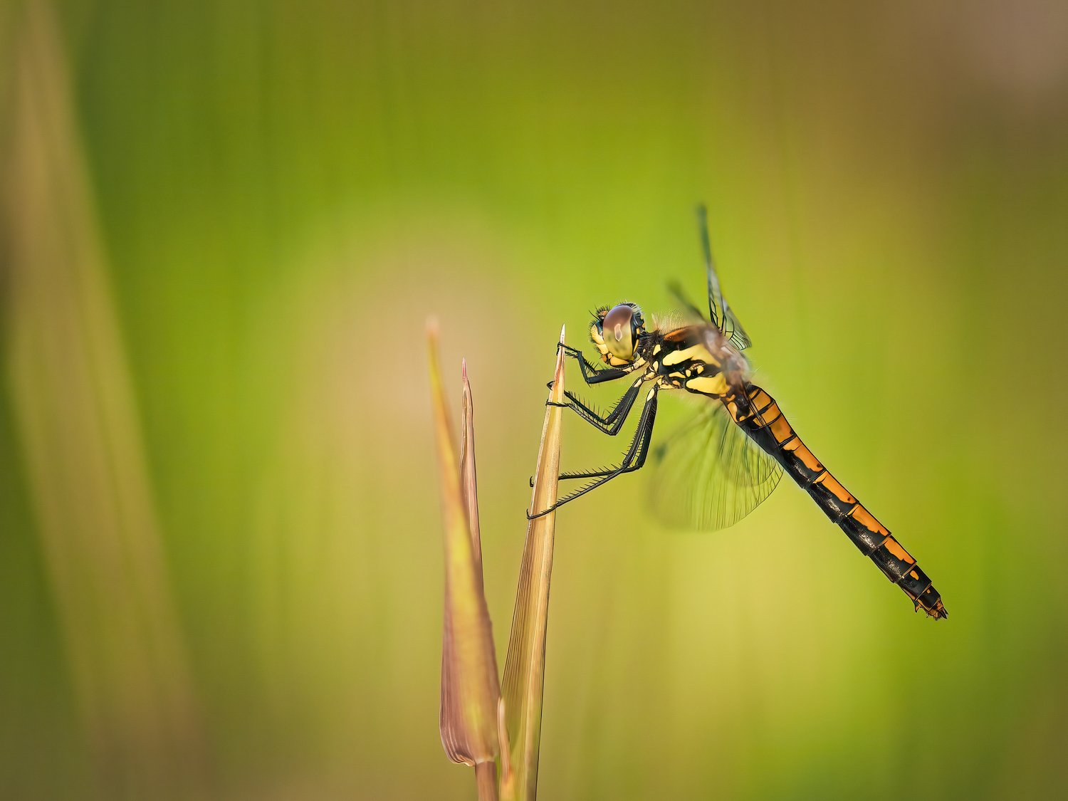 Black Darter dragonfly (Sympetrum danae) is waiting for a suitable prey.