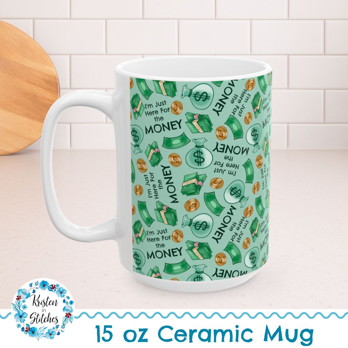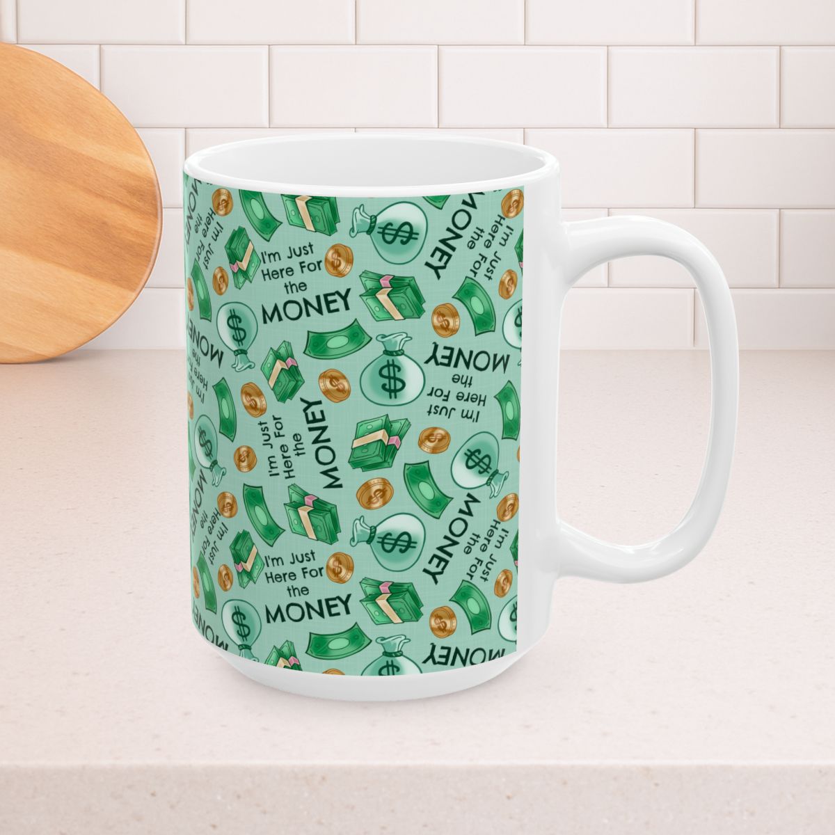 I'm Just Here For The Money 15oz Ceramic Mug, Large Coffee Cup, Office Job Humor