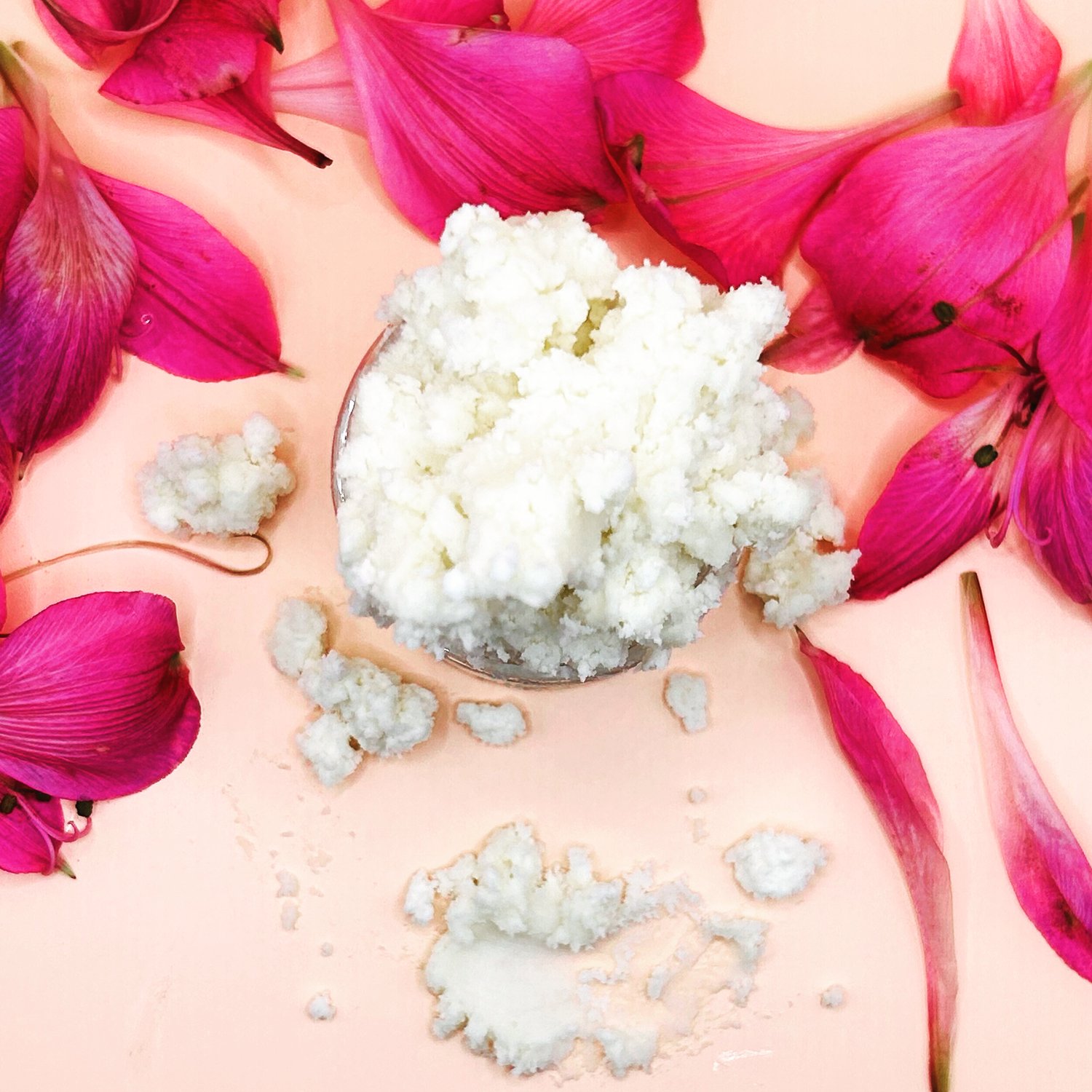 Shea Butter, Coconut, Cocoa butter, Aloe Vera, Grapeseed Oil, Tea Tree Oil