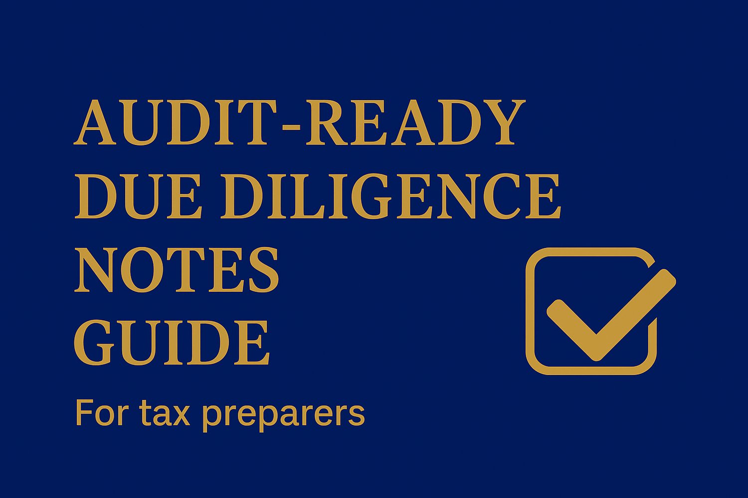 Stay IRS-compliant and protect your practice with this complete guide for writing audit-ready due diligence notes. Packed with realistic, client-story examples for EITC, CTC/ACTC, AOTC, Head-of-Household, and Schedule C scenarios, this guide shows you exactly what to ask, document, and record. Perfect for tax professionals who want stress-free audits, accurate returns, and peace of mind.