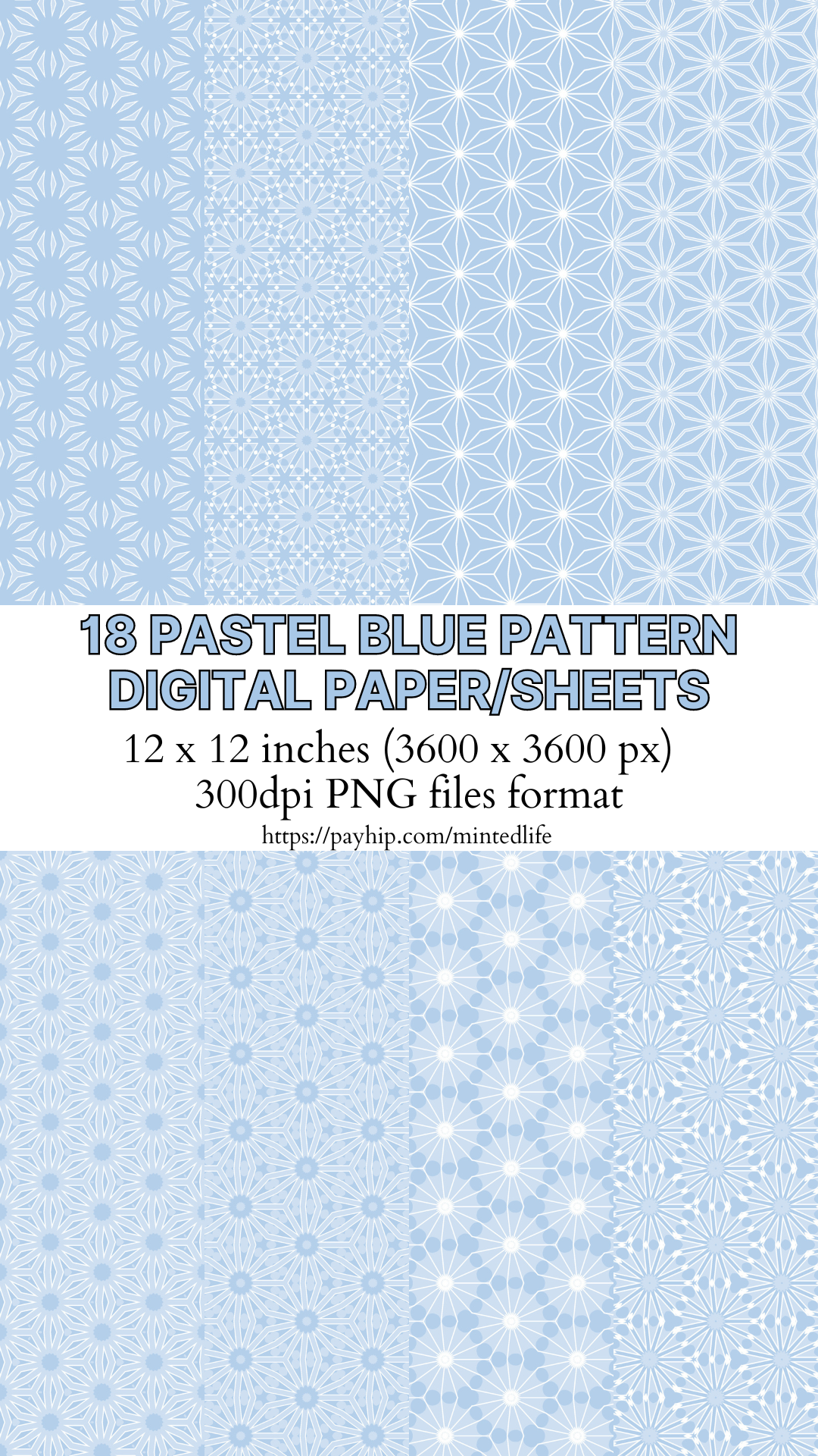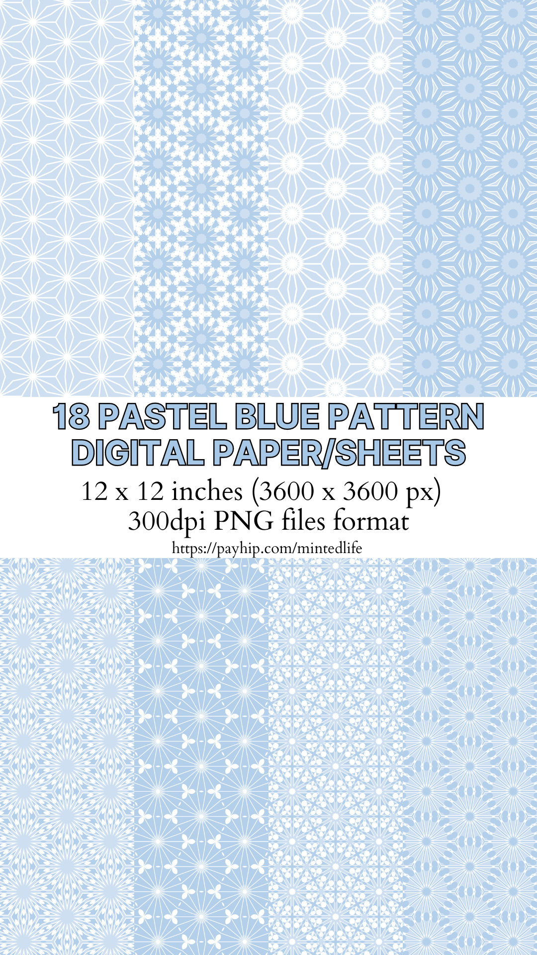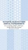 Pastel blue pattern digital paper 18 PNG files 12 x 12 - Instant Download.