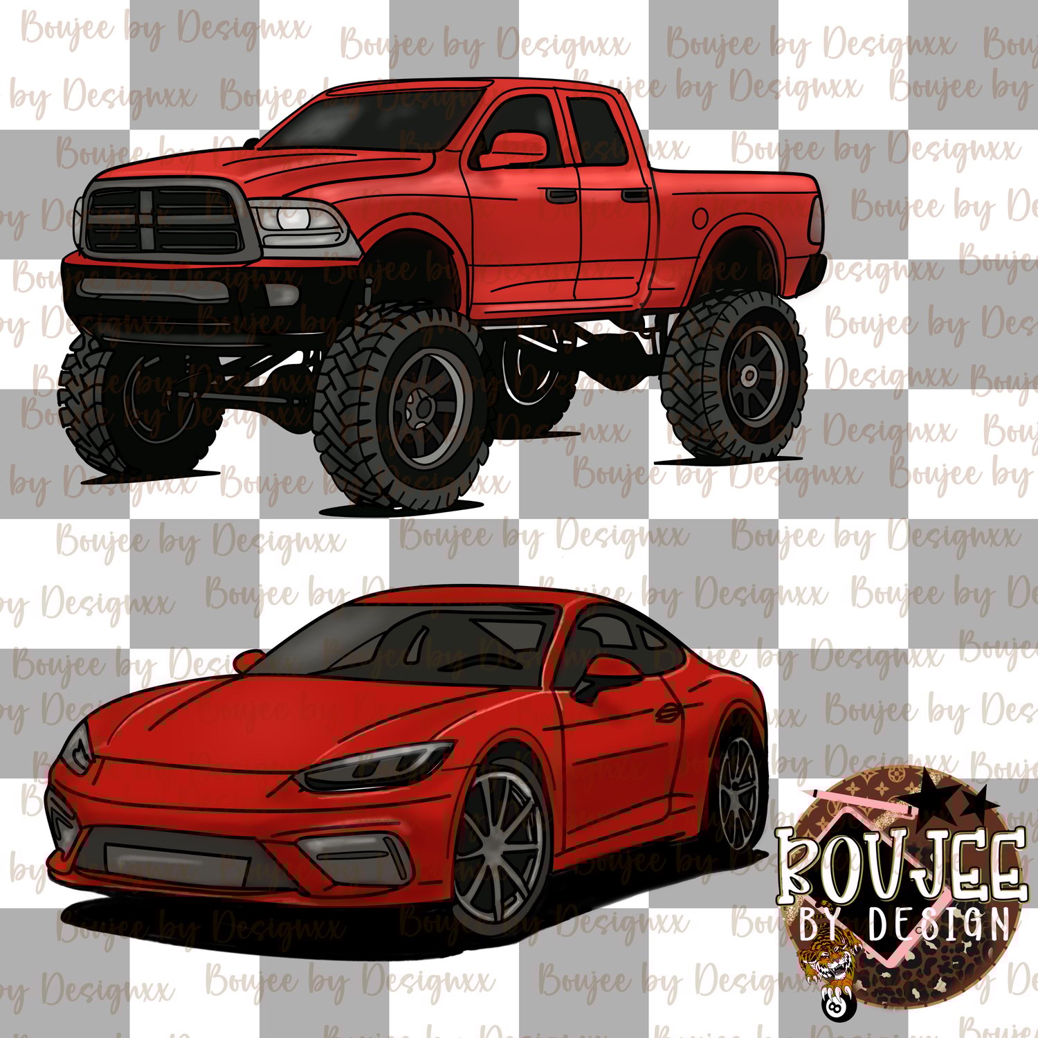 Red Lifted Truck & Sports Car PNG Bundle | Masculine Car Clipart | Truck PNG | Sports Car PNG | Men’s Design PNGs | Sublimation Graphics