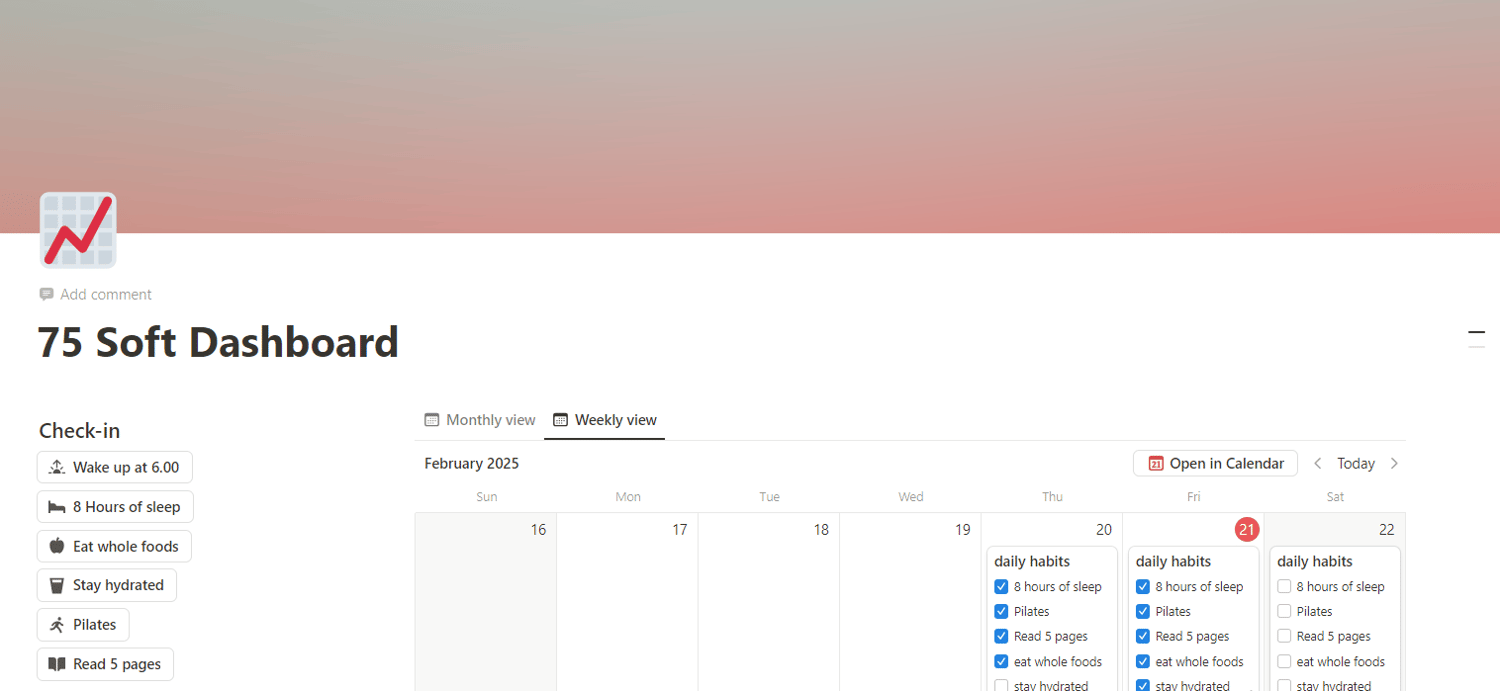 This is ultimate guide and habit tracker that will help you visualise your progress throughout 75 Soft Challenge!