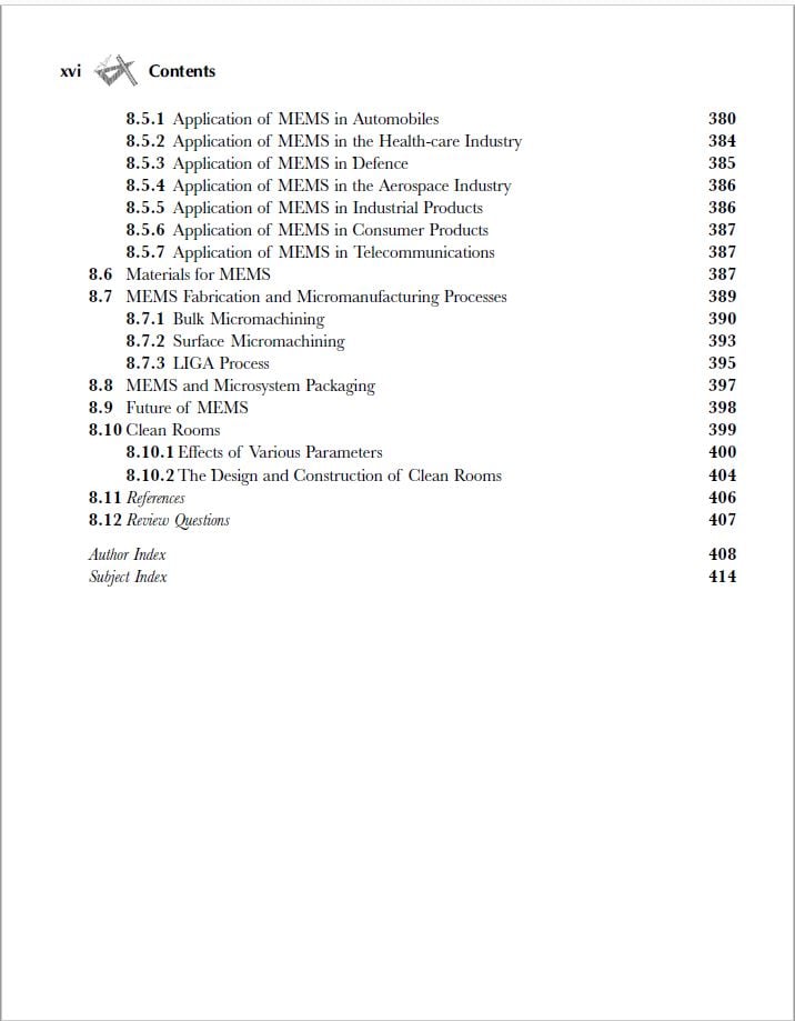 Chapter 8 is the final chapter and deals with MEMS (Microelectro-mechanical Systems).