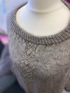 This is a top down sweater, seamless, with a folded rib neckband & lace panel down the front written for both a crop & long version. A fun lace project for all, using the following stitches