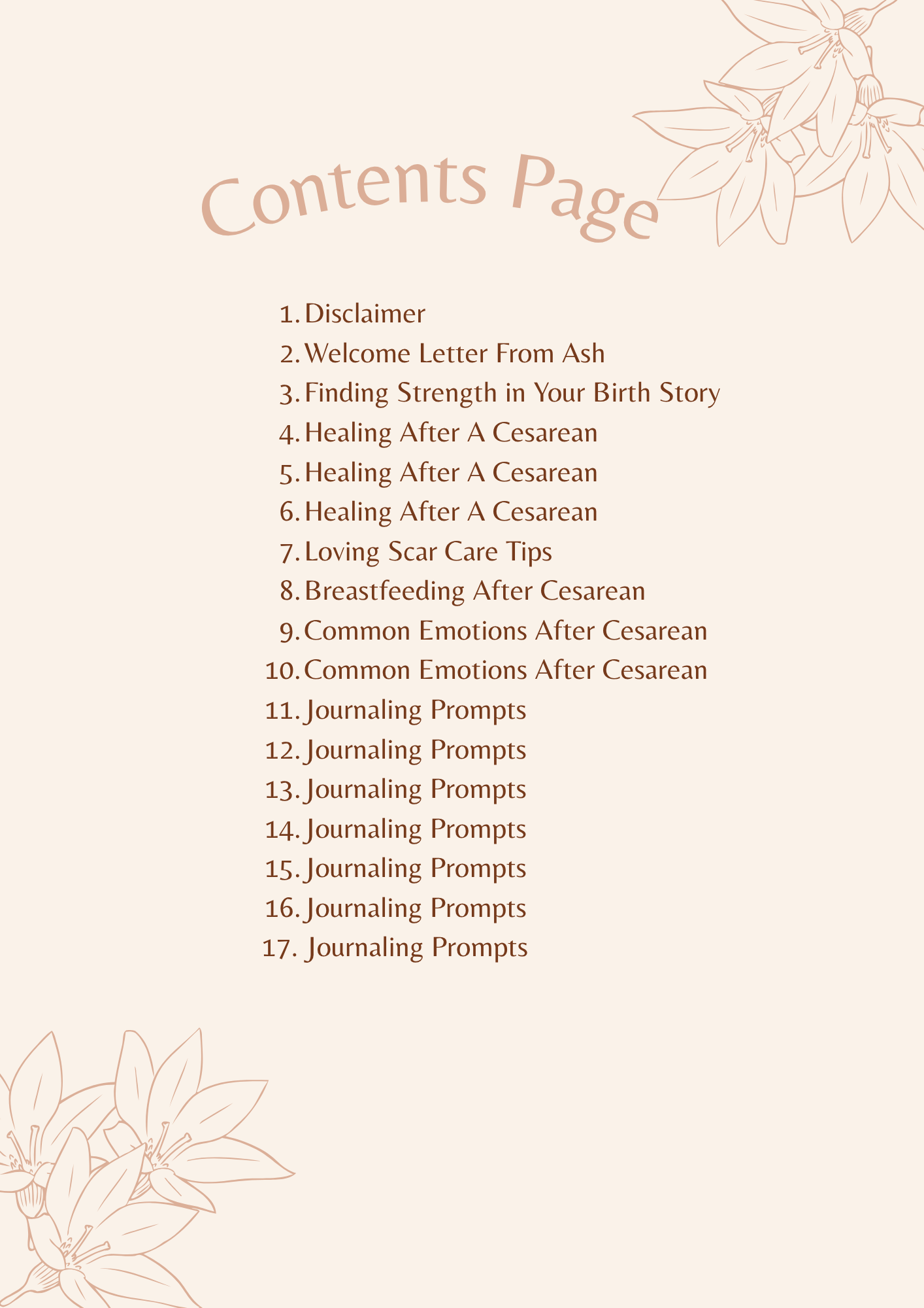 This gentle and grounding booklet is created especially for mamas who have experienced a cesarean birth, whether planned or unexpected. Inside, you’ll find emotional support, validation, and space to process your birth story, along with practical tips for healing, rest, and recovery. Thoughtfully included are soothing affirmations and gentle journaling prompts to help you navigate your feelings and honour your unique journey.