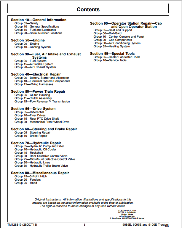 2013 John Deere 5085E 5095E 5100E Repair Technical Manual Part No. TM128319