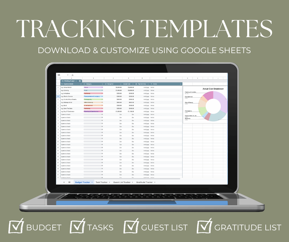 - a gratitude tracker to record contributions and organize thank-you messages after the wedding