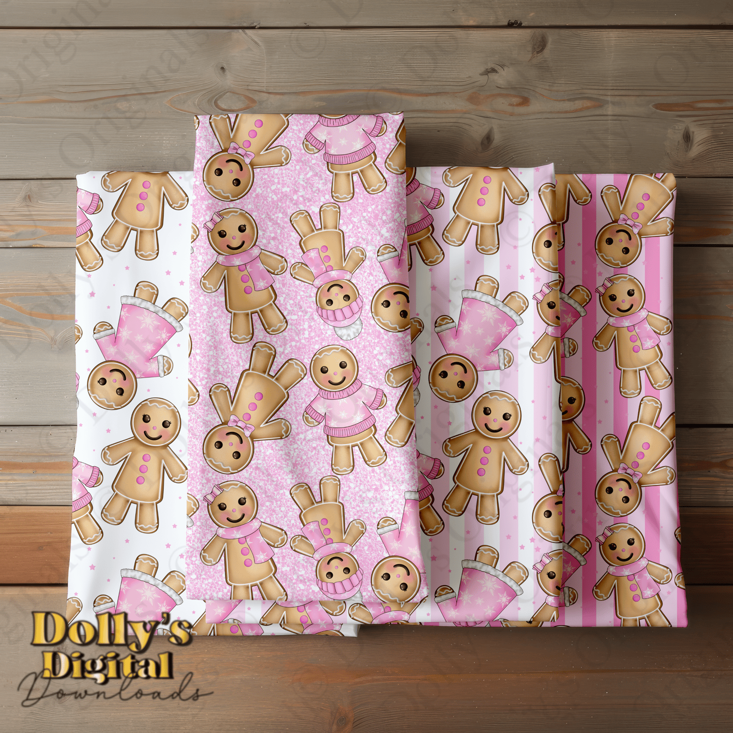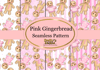Includes Four Pink Gingerbread Seamless Patterns Clipart PNG (4 PNG’s)
