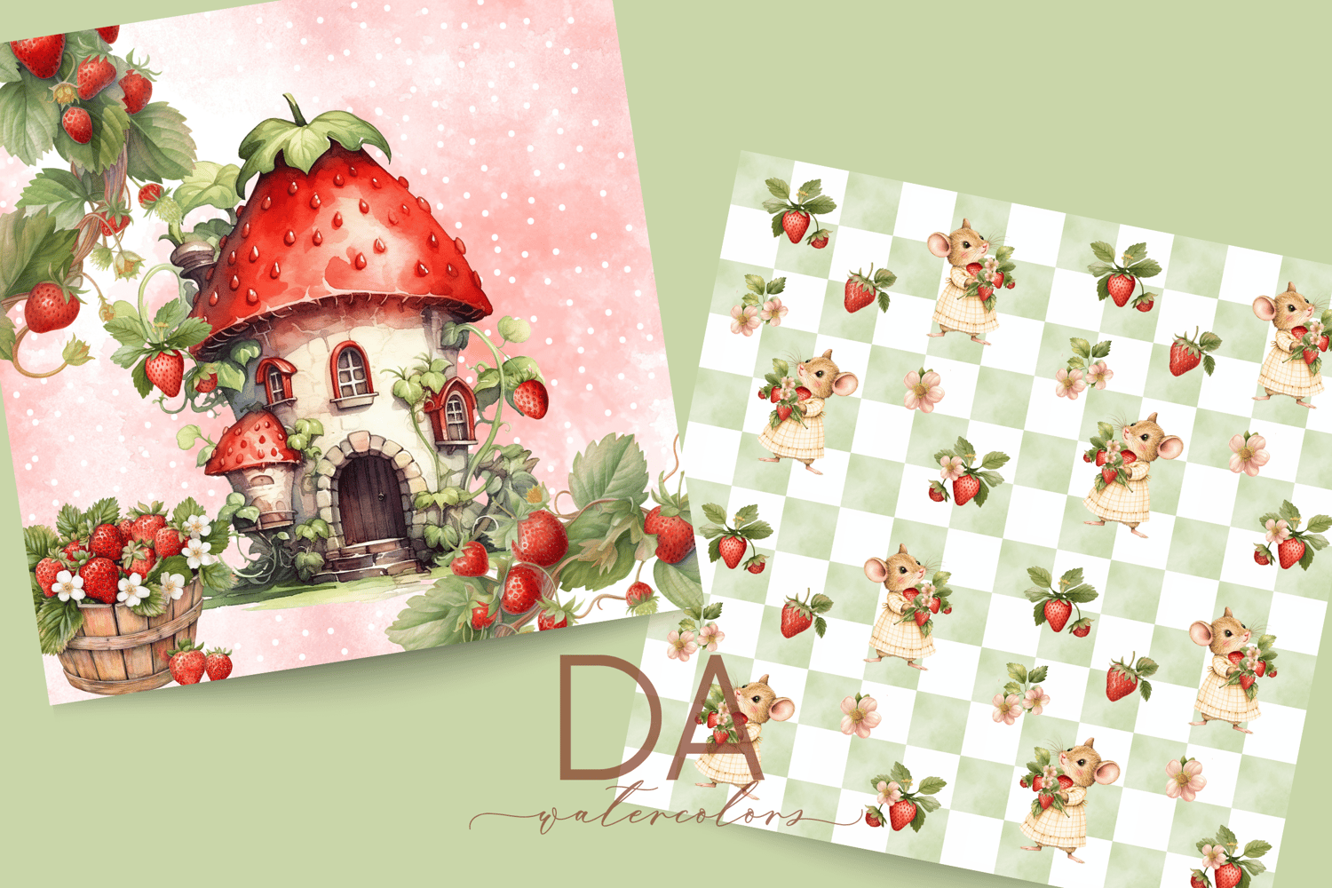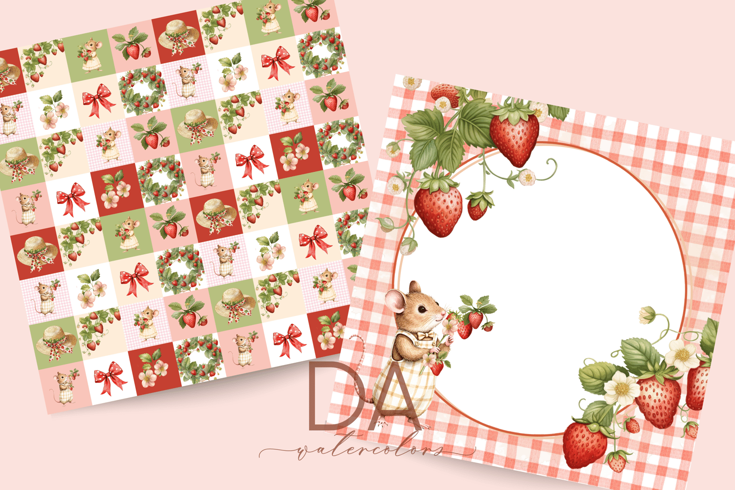 Download this Cute Mouse Strawberry Farm Digital Paper Set. These beautiful JPG papers are perfect for your Summer-themed Junk Journal DIY project. From custom DIY wall art to card design, photo book decoration, and much more! You can also use them as backgrounds for your DIY projects! Here are some more ideas on using them.