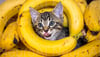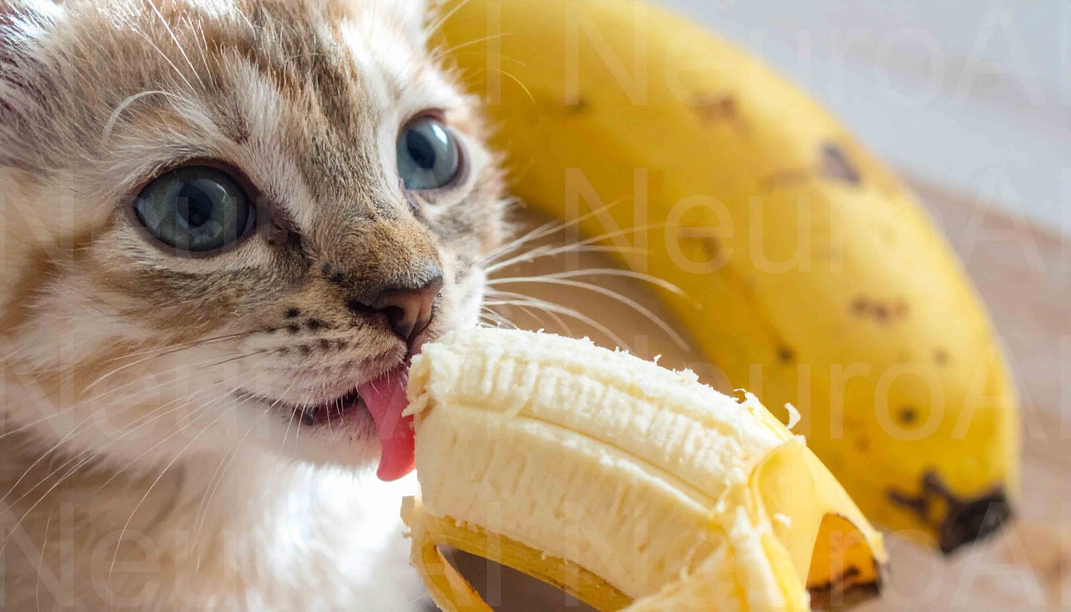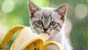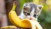 Adorable kitten enjoys a healthy banana snack outdoors