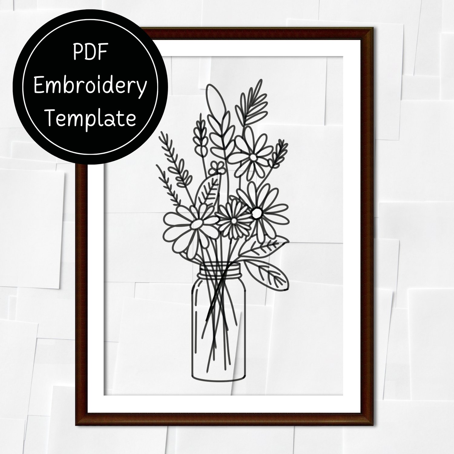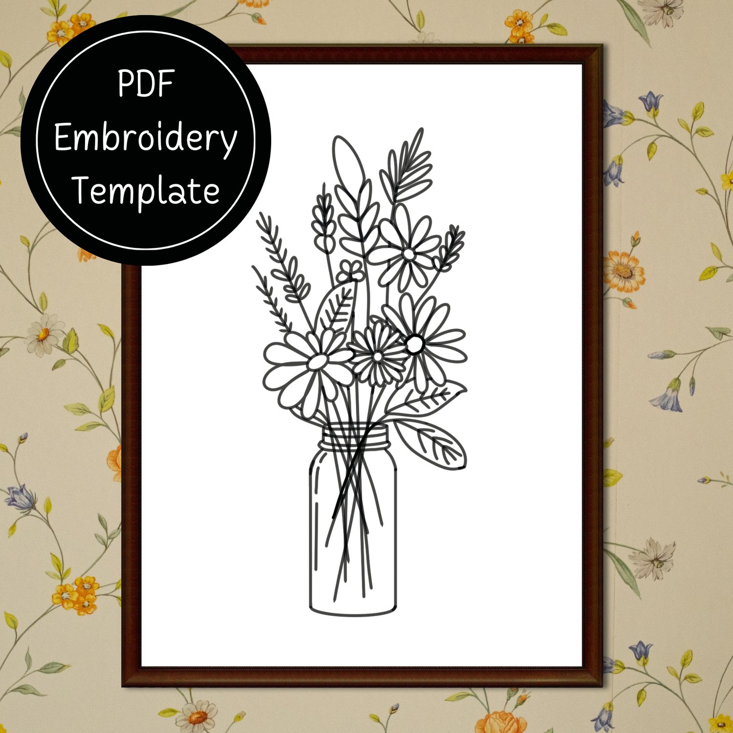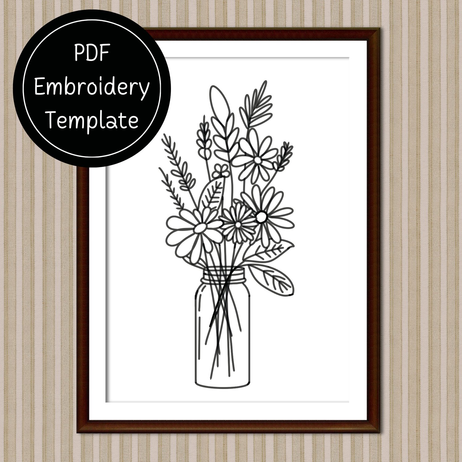 Flower Vase Jar 1 Embroidery Template PDF - DIY Flower Vase design For Hand Stitching - Instant Download