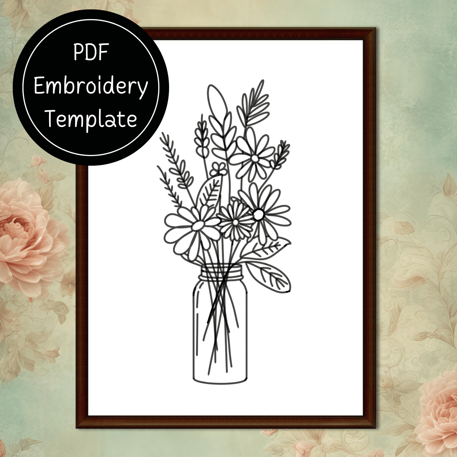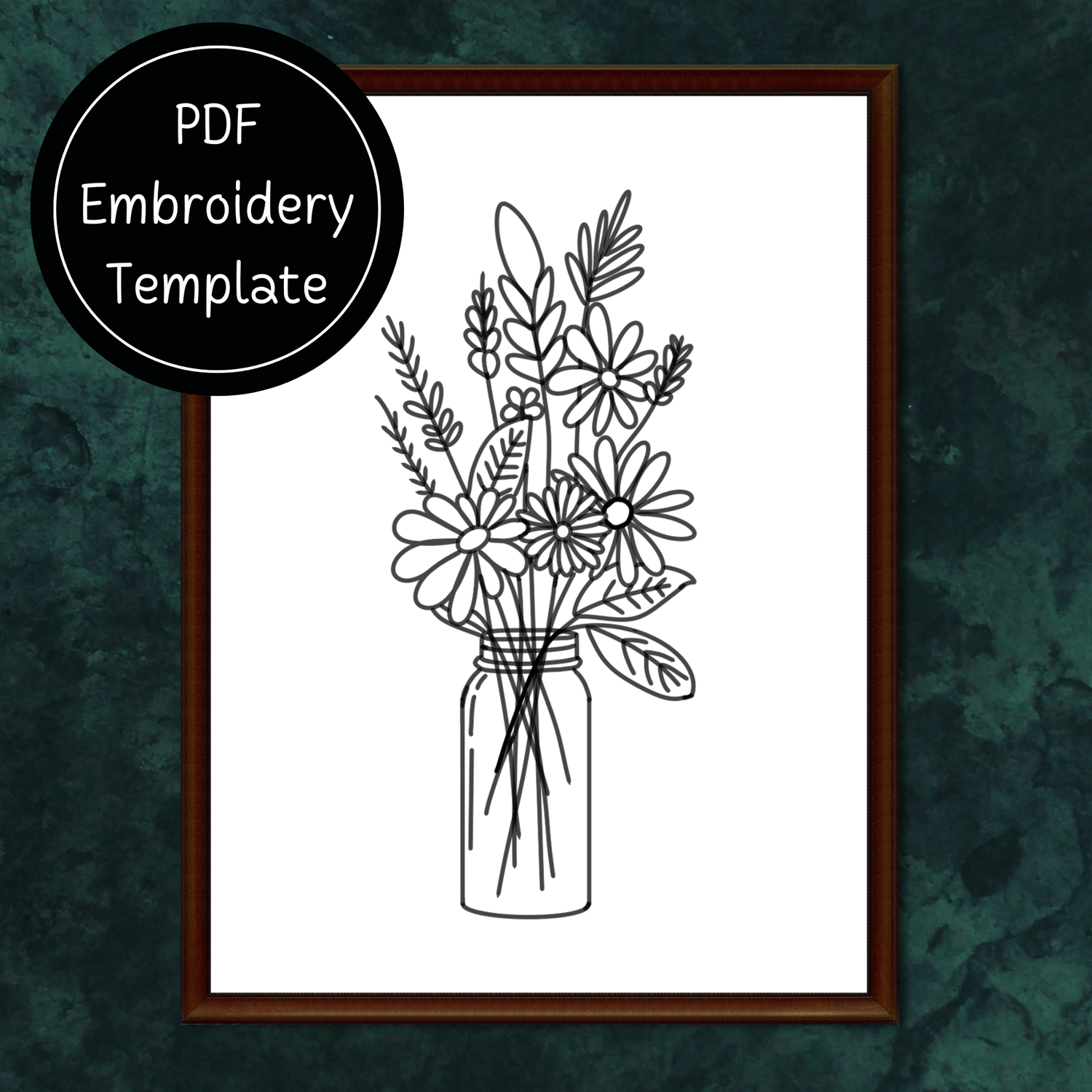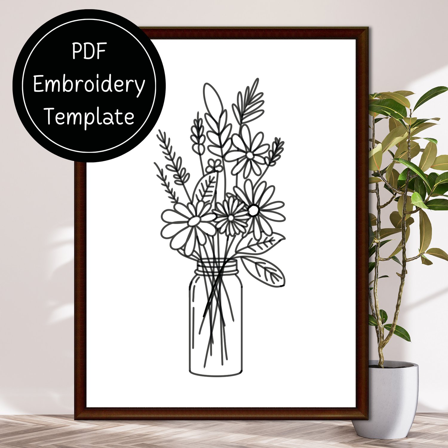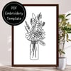 Flower Vase Jar 1 Embroidery Template PDF - DIY Flower Vase design For Hand Stitching - Instant Download