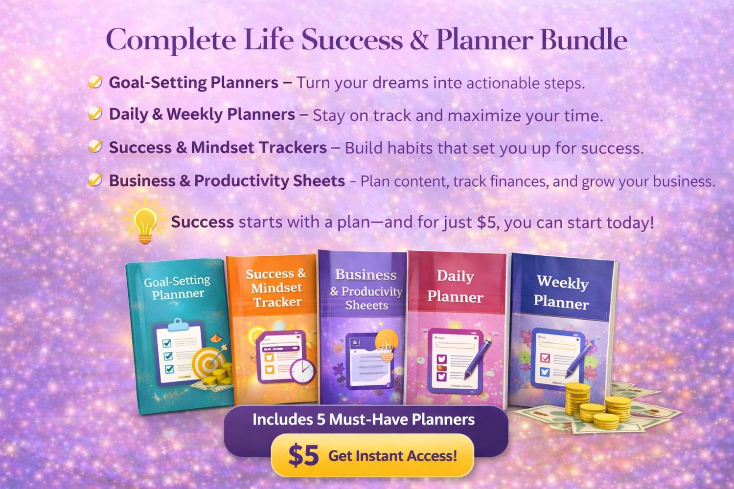 Struggling to stay organized? Feeling overwhelmed by your goals? It’s time to take control of your life and business with the Life & Success Planner Bundle—and it's only $5!