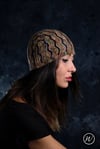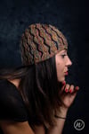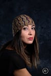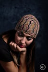 Shown in RiverKnits BFL DK in shades Shroom & Stiefmütterchen [246yd/225m per 100g; 100% BFL]Shown in size 22in/56cm on model with 22.75in/57.75cm circumference head