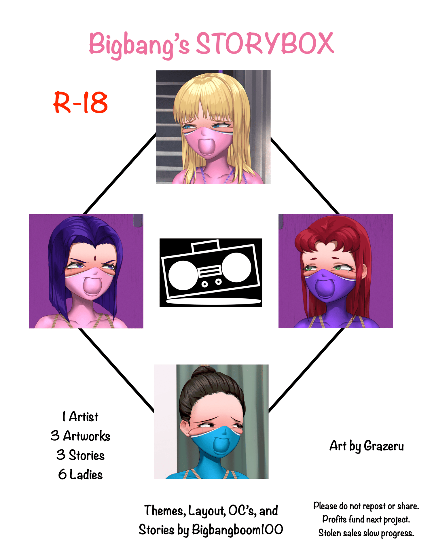 Each image set comes with an accompanying story that pairs with the progression of a total ten image variants! All characters are adults and no pixel people were harmed in the making of this fiction. All stories, layouts, and themes by me. Amazing art by Grazeru. Please do not repost as lost sales impact new projects. Please report thieves.