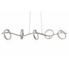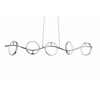 The design consists of 5 LED light rings, connected by a curved horizontal axis. Each ring can be oriented in different directions, allowing the creation of multiple aesthetic configurations and personalised lighting according to the space or mood.