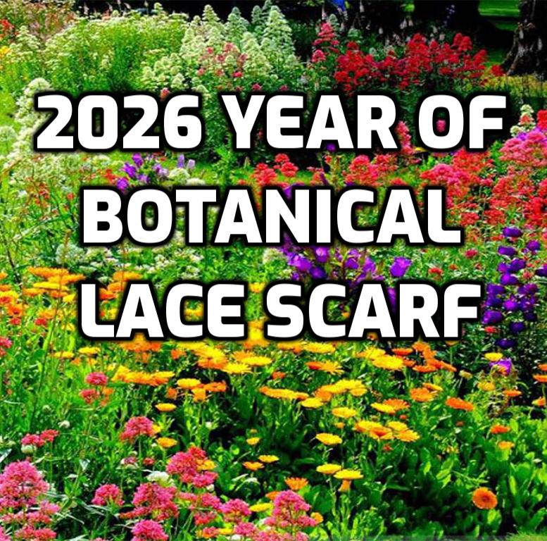 2026 brings us flowers, vines, and leaves all done in delicate lace for our year-long sampler challenge. Add in some texture with bobbles, beads, and Nupps and you have a beautiful scarf coming your way.