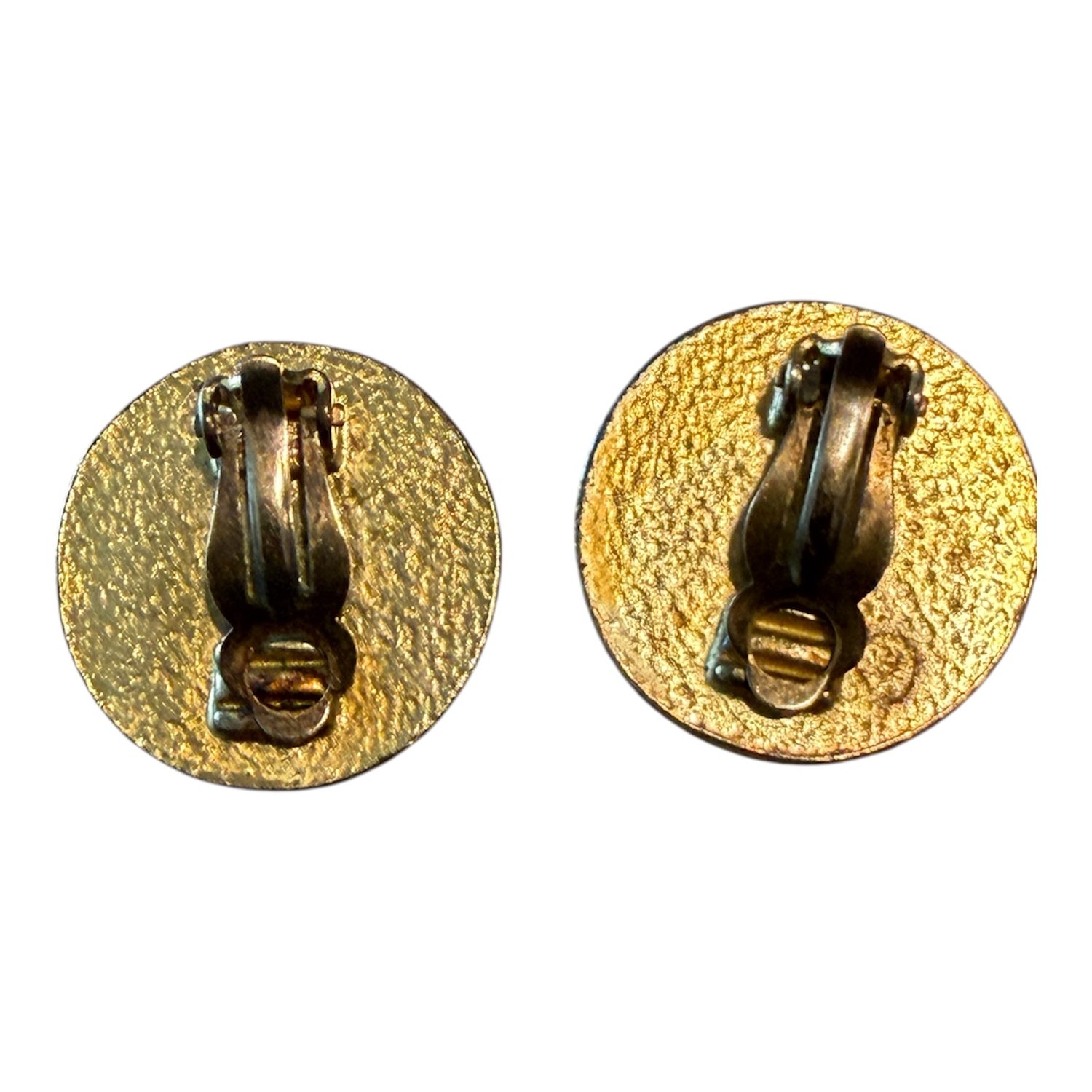 Vintage Chanel gold-tone clip-on earrings featuring a vibrant red enamel background with raised CC logo.