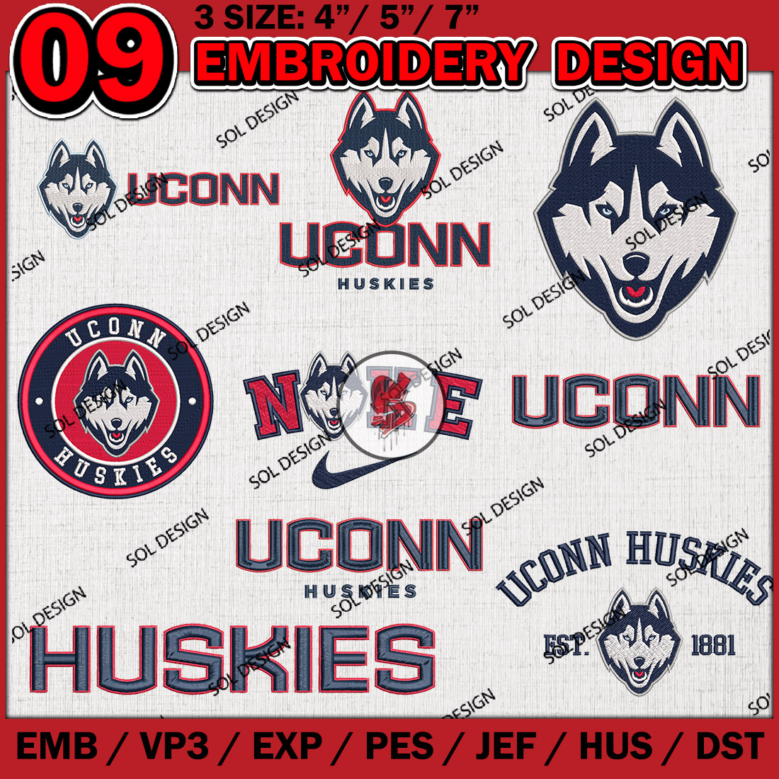 9 UConn Huskies Bundle Embroidery Files, College Football Embroidery Designs, NCAA UConn Huskies Machine embroidery Design Bundle, Ncaa UConn Logo bundle, Digital Download