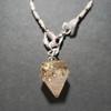 This pendulum is handmade from pink resin, embedded with rose quartz chips. It is made into a bracelet so you can wear it and keep it with you. Bracelet measures 7 inches in length, not including the hanging pendulum piece. Shipped with instructions