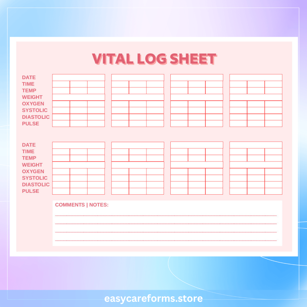 Each section is clearly labeled, allowing for efficient daily tracking and monitoring. Whether for personal use or sharing with healthcare providers, this log is an essential tool for maintaining your well-being and managing health effectively.