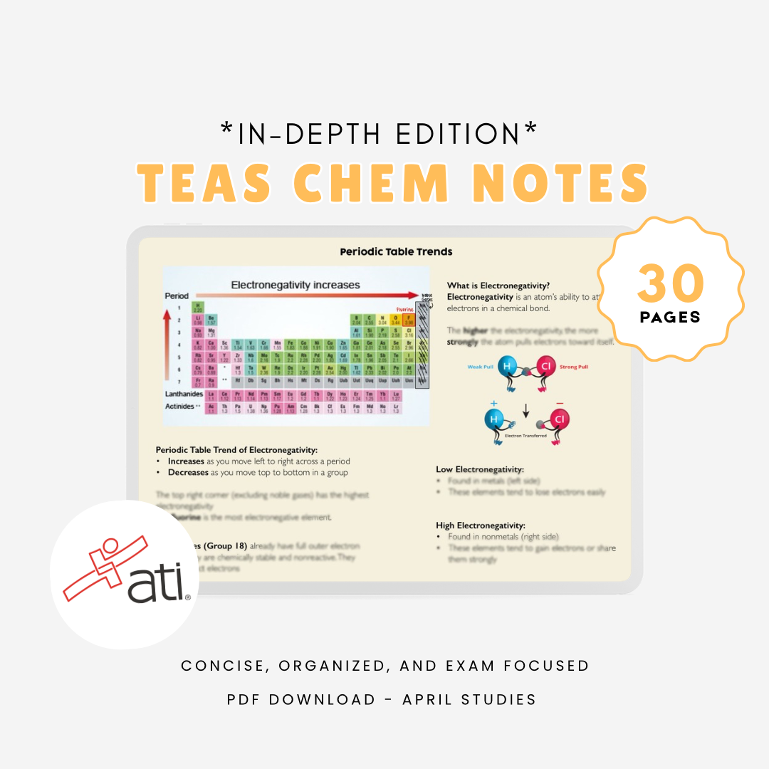 TEAS Chemistry and Scientific Reasoning Notes made by me @aprilstudies. These are the in depth notes I made to study for the TEAS exam covering topics on: