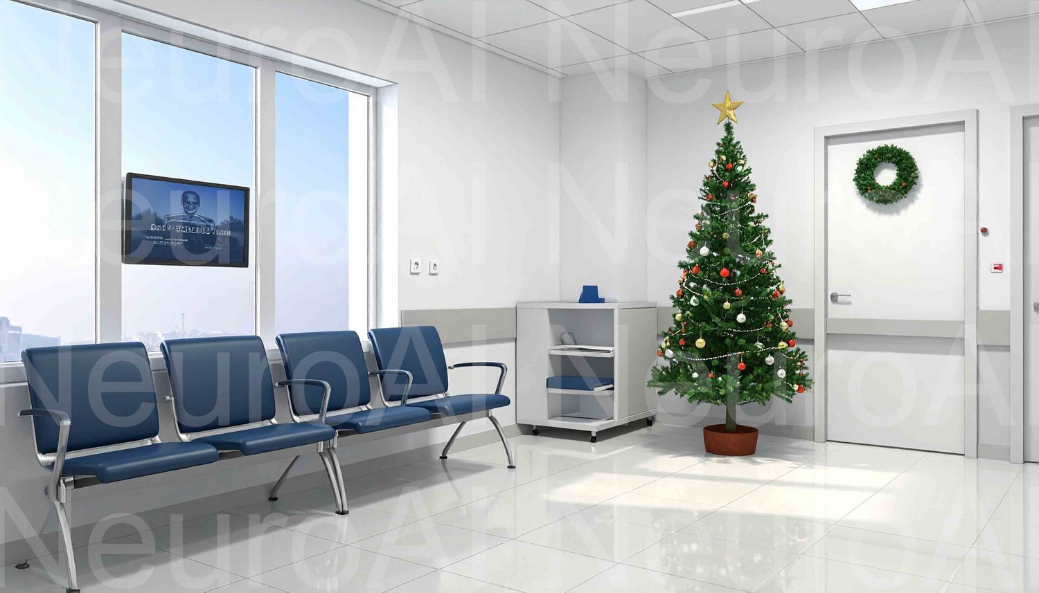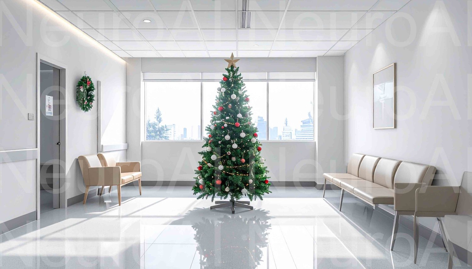 Holiday cheer greets patients in modern waiting room