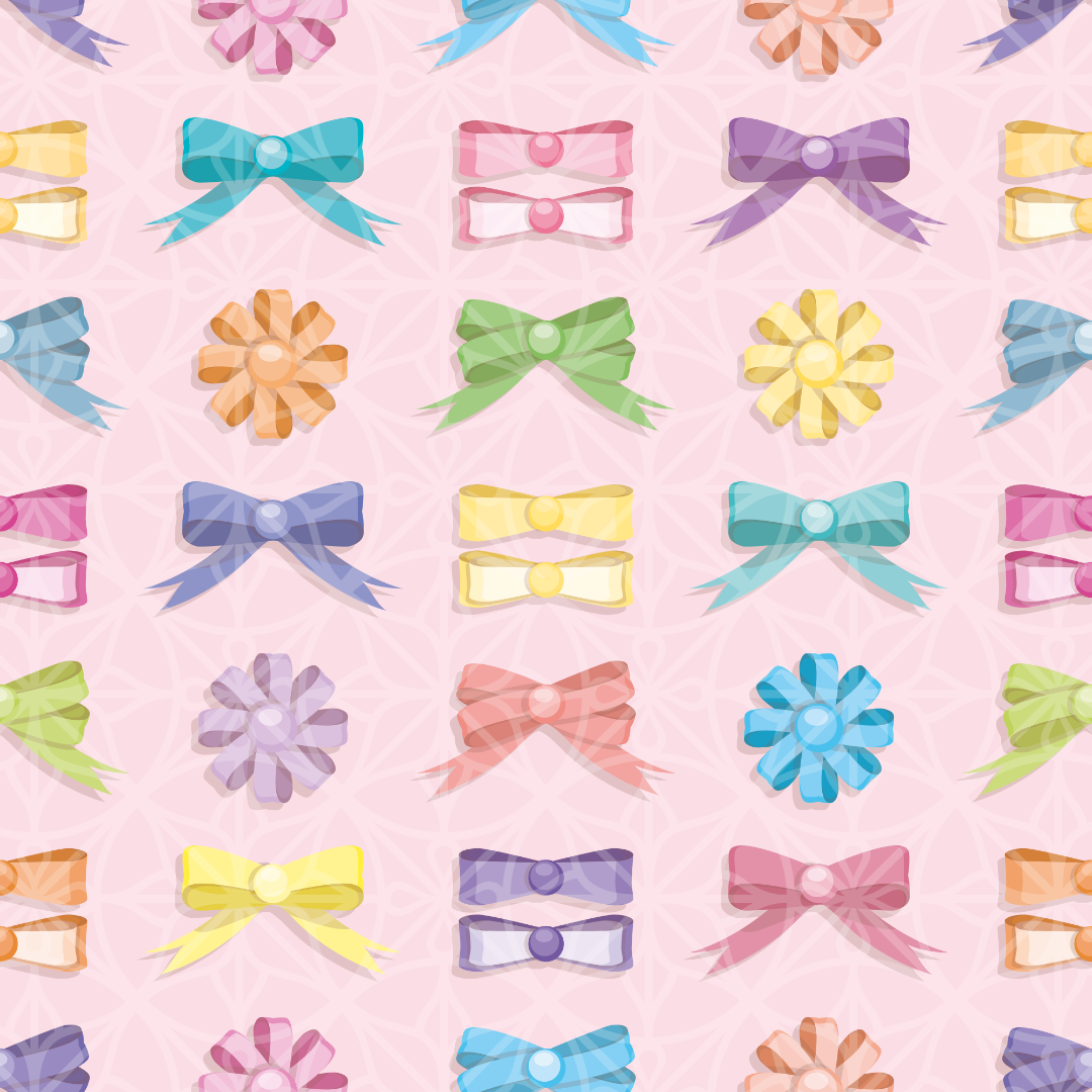 Colorful bows seamless vector pattern. Cute girly digital illustration with ribbons tied in different styles.