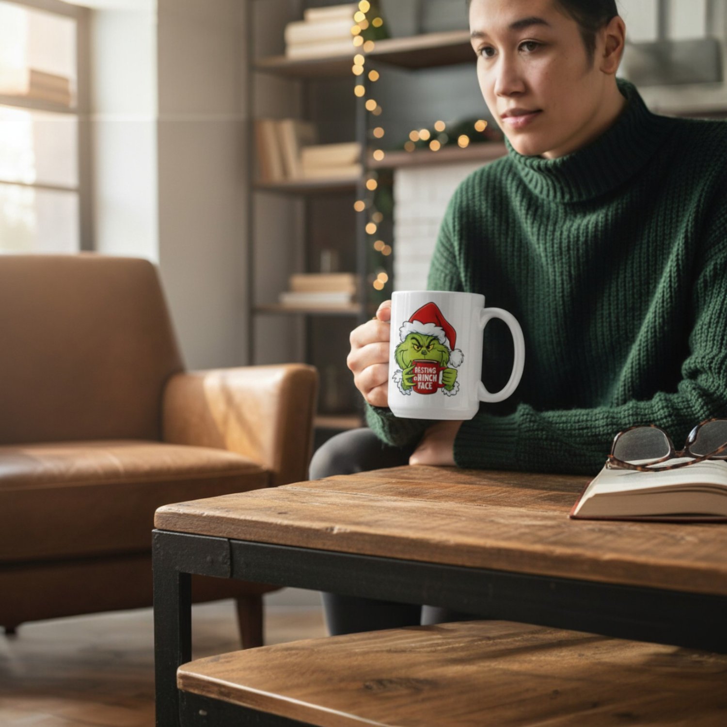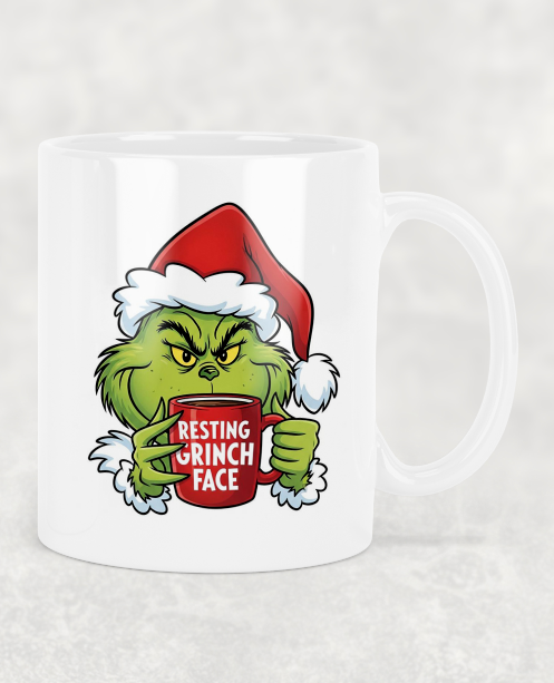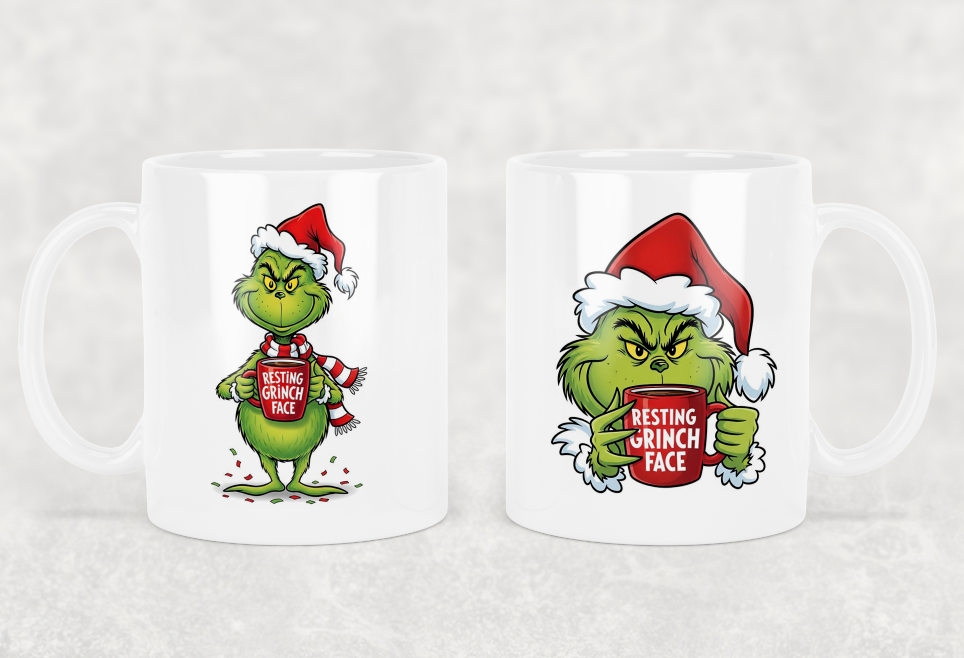 Feeling festive but not fake? Our “Resting Grinch Face” mug is the ultimate holiday mood booster for anyone who’s merry with a side of mischief. Featuring a grumpy Grinch in full Santa gear clutching his own mug of sass, this ceramic classic is perfect for hot cocoa, coffee, or peppermint tea with attitude. Great for gifting, stocking stuffing, or surviving the season one sip at a time.