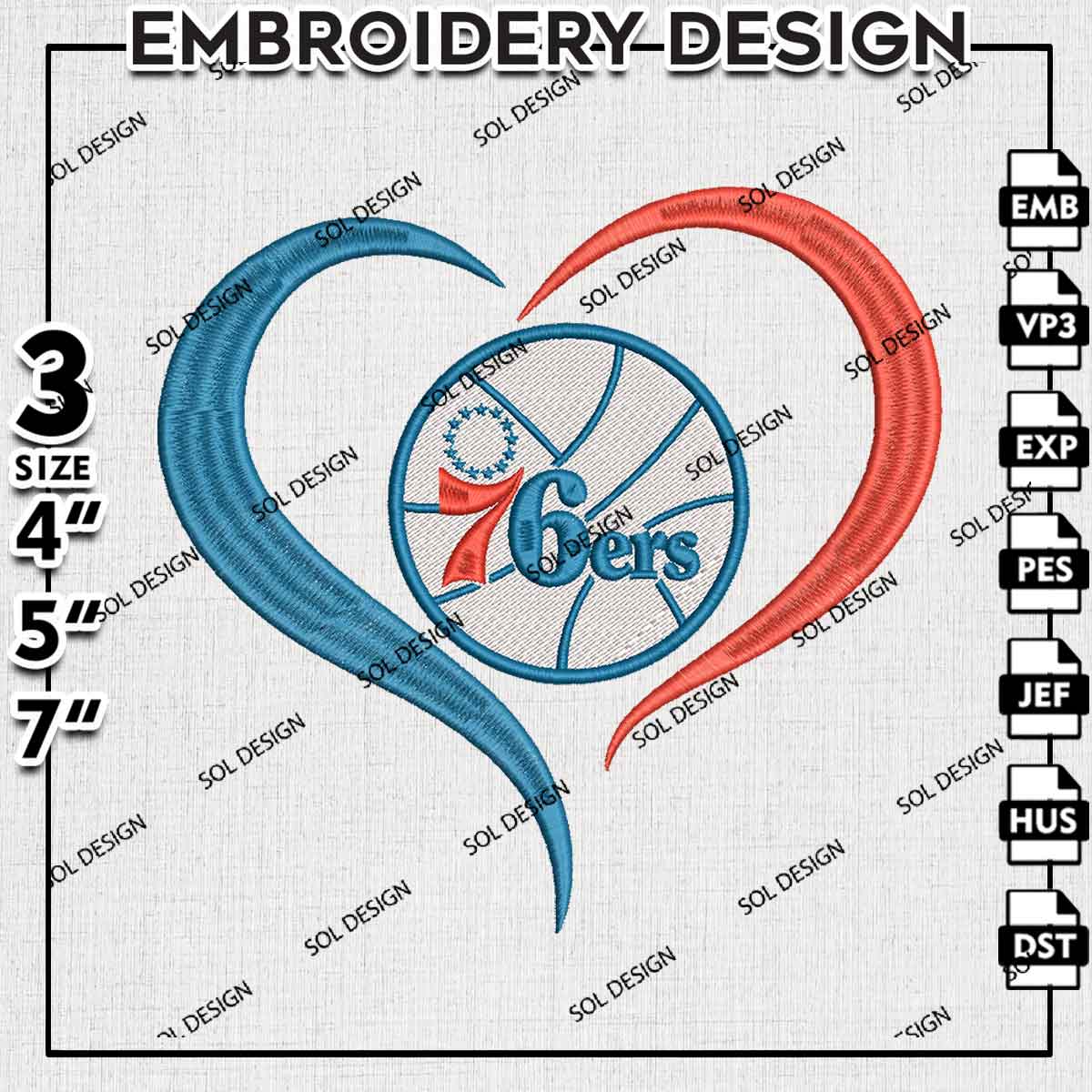 Philadelphia 76ers Team Heart Logo Embroidery Designs, Philadelphia 76ers Basketball Team Embroidery Files, NBA 76ers Team Logo Embroidery, NBA Basketball Team Machine Embroidery Design, 3 sizes, Digital Download
