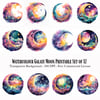 The Watercolour Galaxy Moon Printable - Fantasy Moon Printables set offers an incredible value with 12 high quality files. Each file measures 4000x4000 pixels and has a resolution of 300 DPI, ensuring beautiful and sharp prints. These files feature stunning watercolour galaxy moon designs, which are perfect for adding a touch of fantasy and whimsy to your art collection.