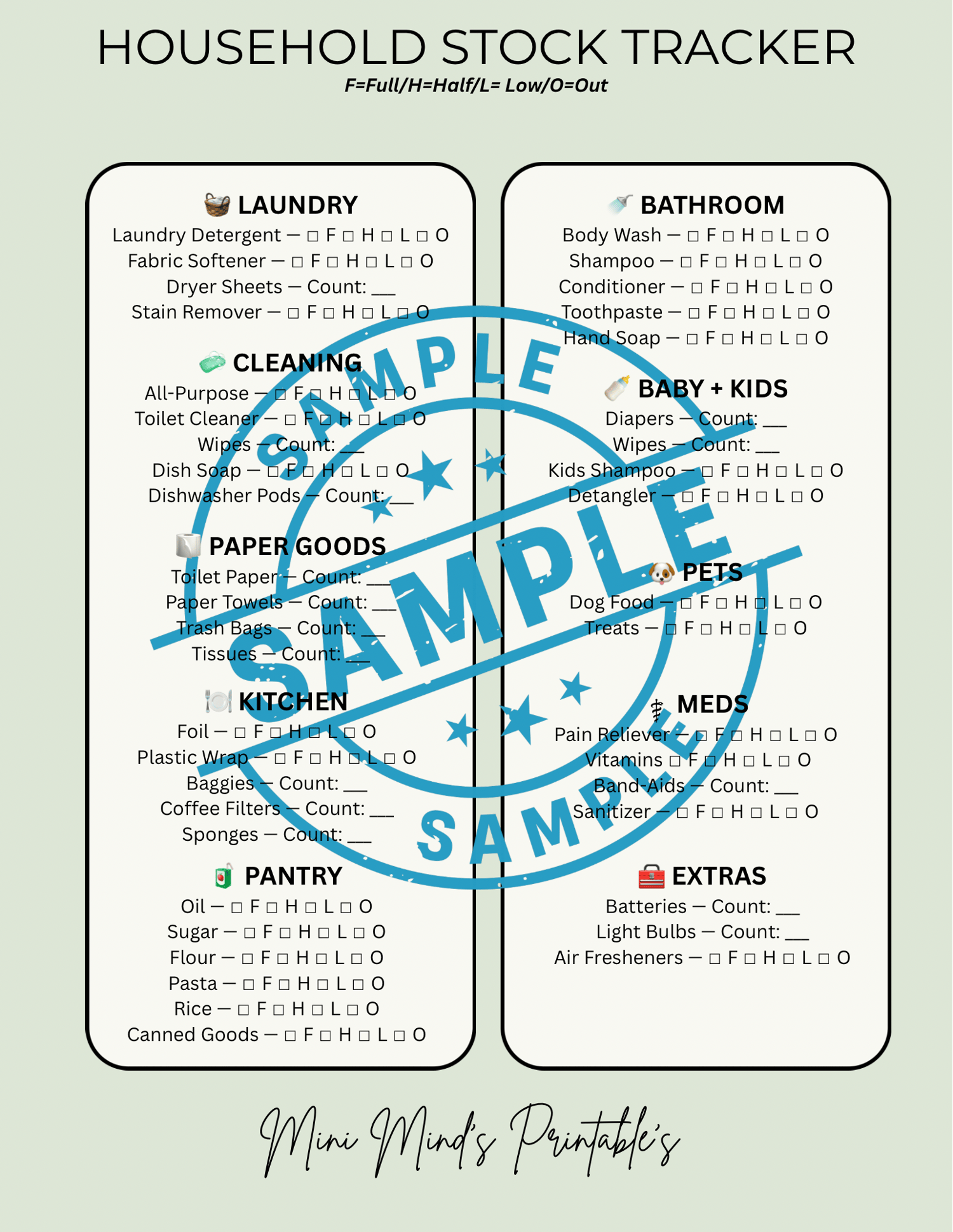 • 1 PDF — Household Stock Tracker (8.5x11 in)