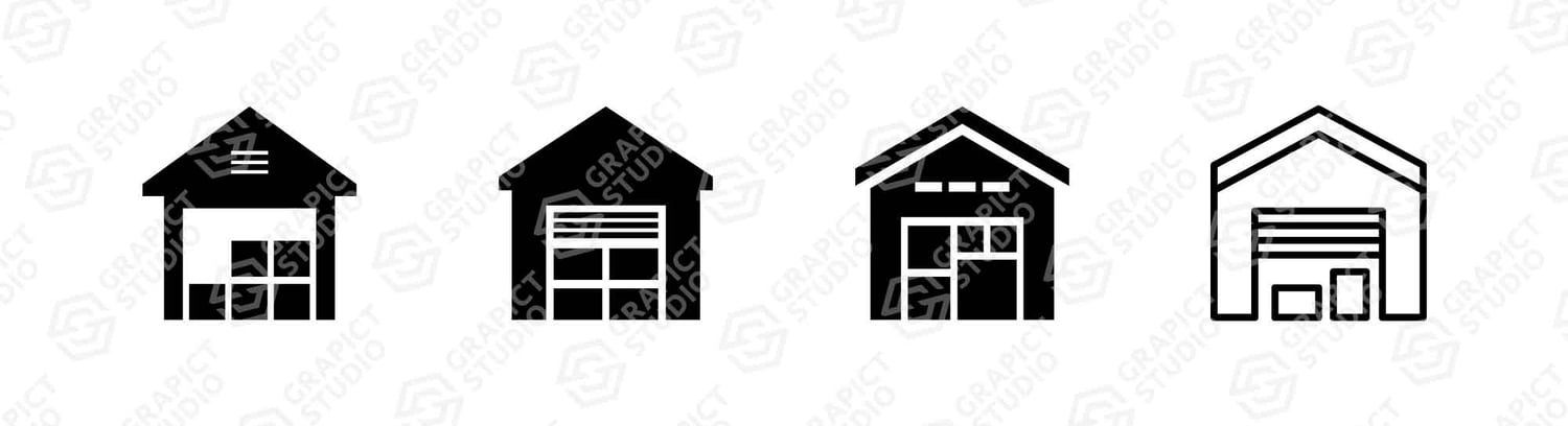 Warehouse icon design. Creative illustration outlined style, editable stroke and flat glyph style icon. Vector clipart image, graphic design element.