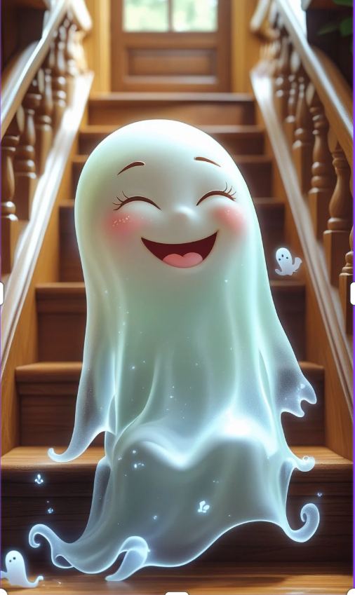 A sweet and playful design featuring a little ghost in a cozy home — perfect for kids, Halloween fun, or whimsical room décor.