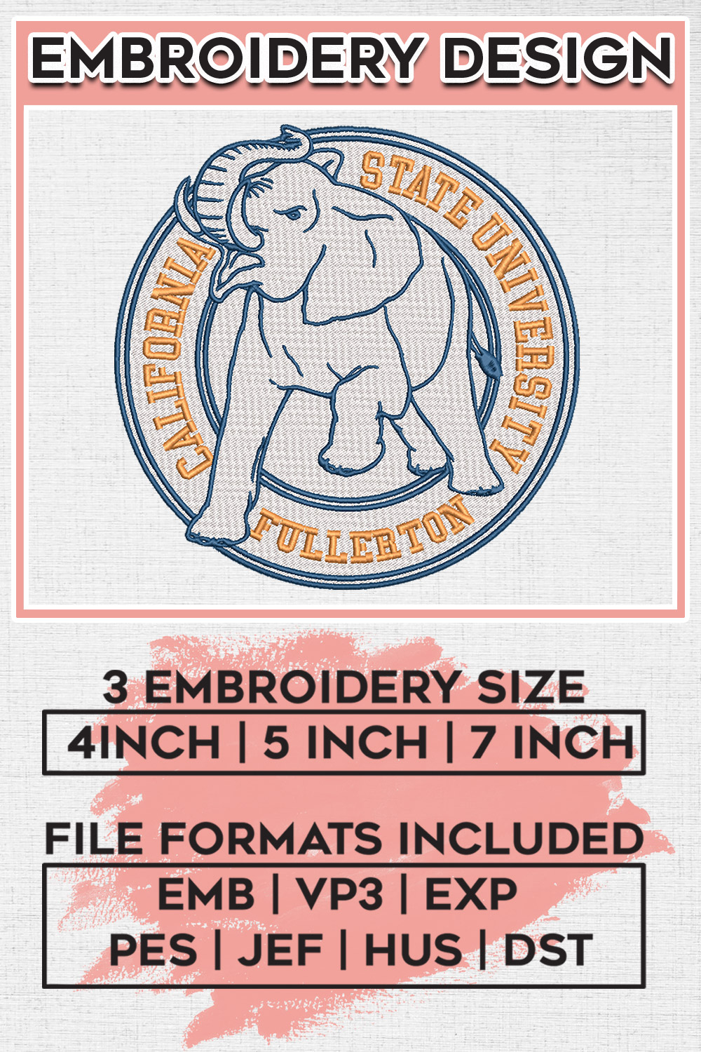 California State University Fullerton Embroidery Designs, Ncaa Logo Embroidery Files, California State University, Fullerton Logo Embroidery Design, NCAA CSUF Titans Machine Embroidery Design, Digital Download