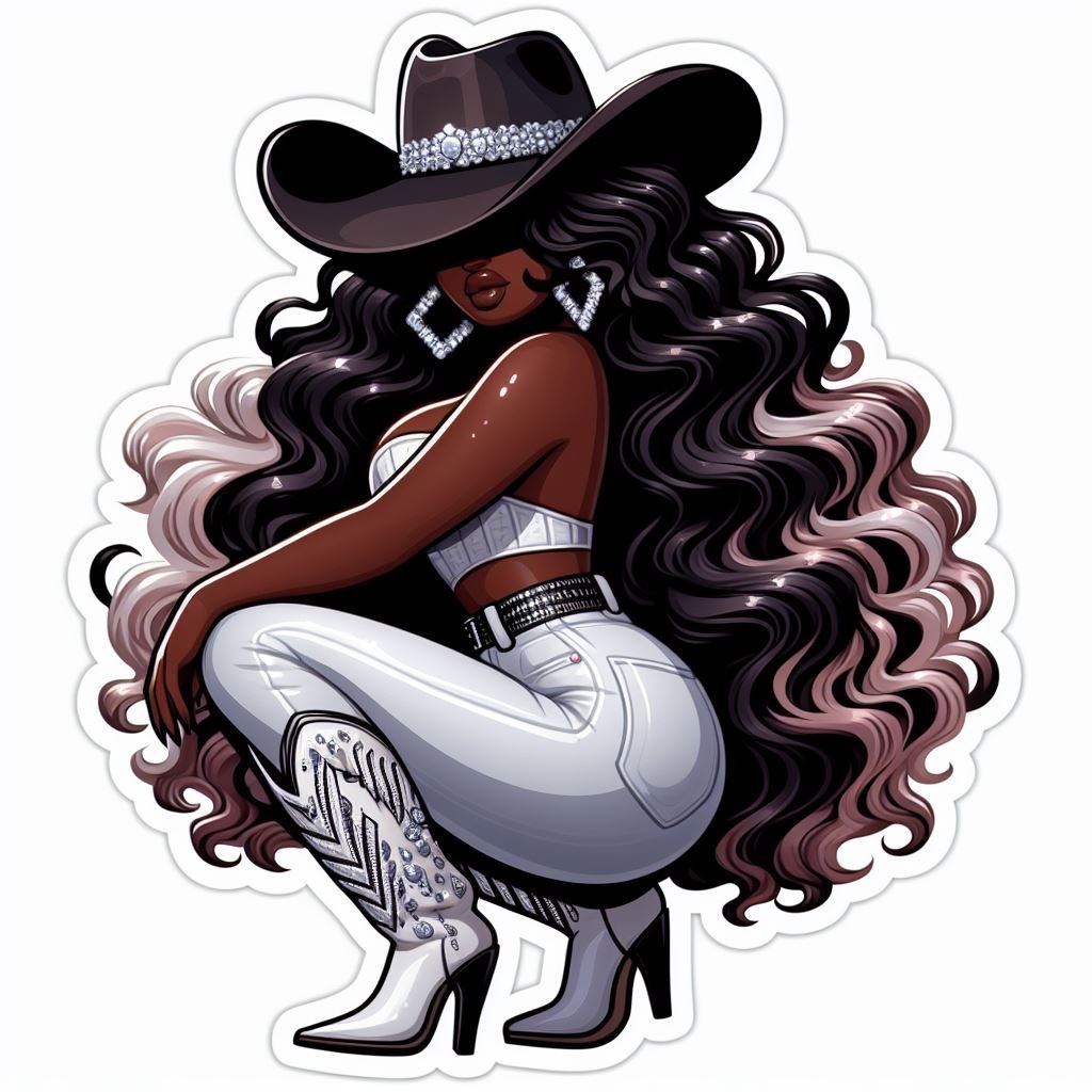 Cowgirl Illustration Sparkling Brown Hat White Boots Sticker - BONUS MOCKUP included