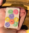 Burst into nostalgia with our vibrant and fruity essence of Fruitloop soap, reminiscing a popular cereal. This soap not only cleanses but delights the senses. Creamy Goatmilk provides deep hydration, leaving your skin feeling soft and rejuvenated. Each wash is a playful reminder of childhood mornings, making your bathing experience joyful and nourishing.